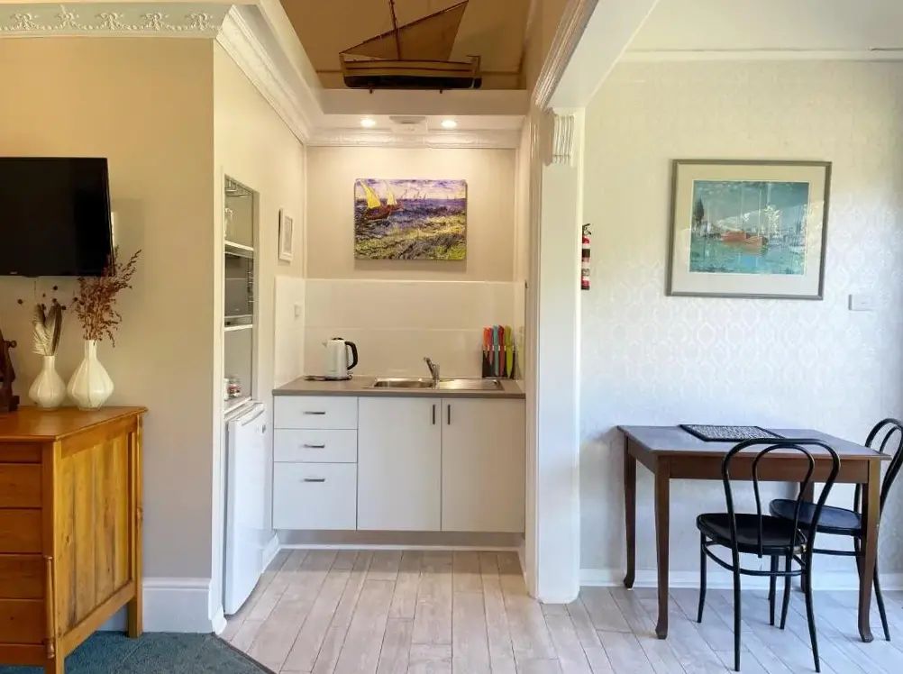 More information about BayviewsThe Boat House offers family rooms along with free parking and beachfront access on Esplanade in Strahan, providing direct views of the water. Guests can enjoy proximity to several local attractions without long drives. Regatta Point lies just three kilometers away via a four-minute drive, making it ideal for scenic walks or picnics near the harbor.